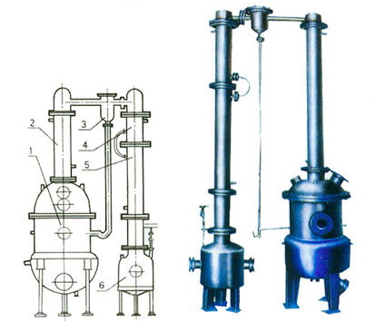 1、濃縮罐 2、第一冷凝器 3、汽液分離器 4、第二冷凝器 5、冷卻器 6、受液槽
